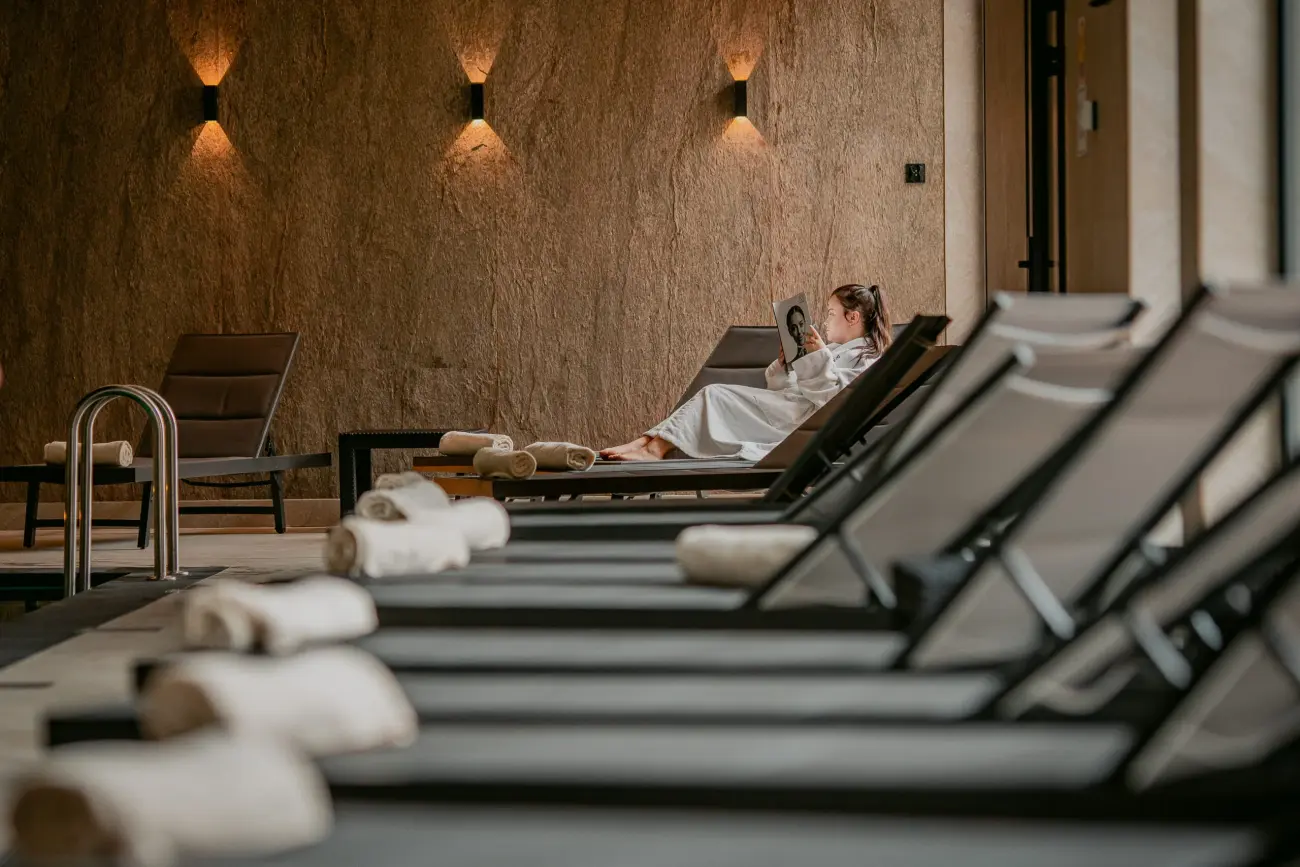 “Give yourself an hour of pure relaxation. We begin with a salt scrub that smooths your skin and prepares it for a full-body massage. 60 minutes of soothing touch that soothes and restores harmony. Before your treatment, you’ll have unlimited access to our wellness area – the pool, salt caves, sun meadow, jacuzzi, and saunas. This is a moment just for you – to slow down and feel beautiful.”