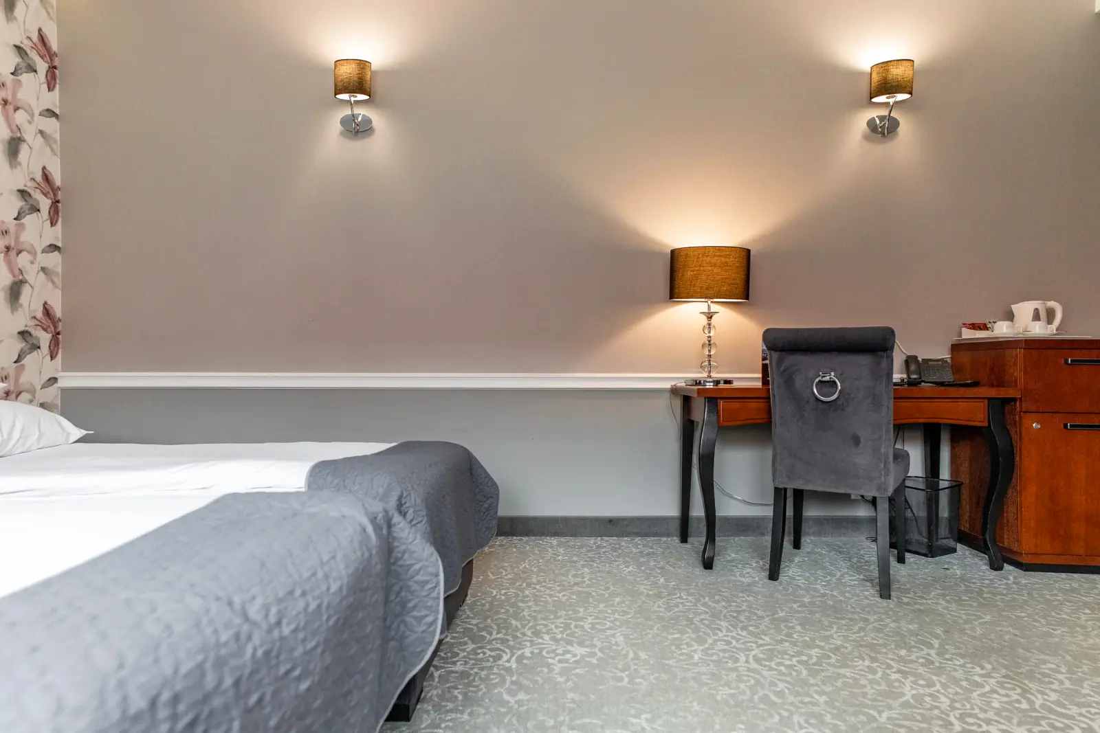 Przestronny pokój o powierzchni 28 m2 z 2 łóżkami pojedynczymi z możliwością połączenia. Pokoje zlokalizowane w wyciszonej części hotelu w pobliżu strefy SPA & Wellness. Pokoje posiadają łazienki z wanną. W każdym pokoju znajduje się zestaw powitalny do parzenia kawy i herbaty oraz czajnik.